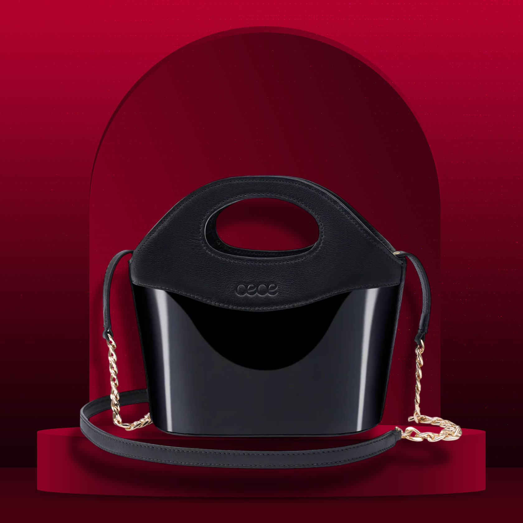 Bolso CAPRI está confeccionado en piel negra y charol. Asas superiores de piel y correa para el hombro extraíble. Una pieza femenina y fácil de llevar, perfecta para la ciudad o para looks de fiesta, que cuenta con espacio suficiente para los objetos personales de diario.